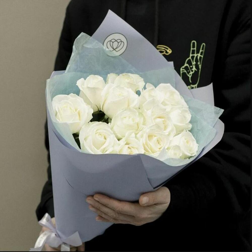 Букет из 15 белых роз 50 см