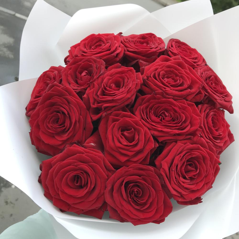 Роза – 15 шт.Упаковка – 2 шт.Лента атласная – 1 шт.
