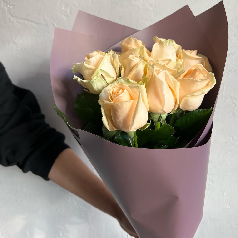 Роза одноголовая – 9 шт.Упаковка дизайнерская – 2 шт.Лента атласная – 2 шт.