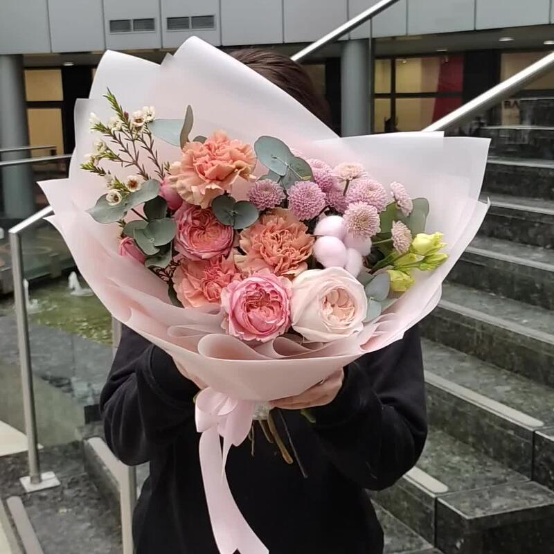 Категорий: Гвоздики, Кустовые розы, Пионовидные розы, Розы, Хризантемы