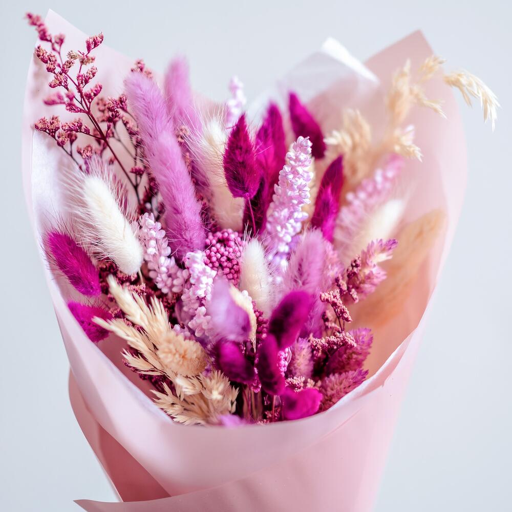 Букет из сухоцветов в лавандовых оттенках с хлопком