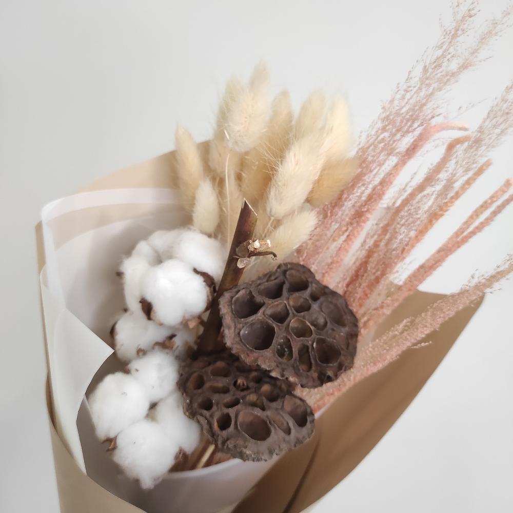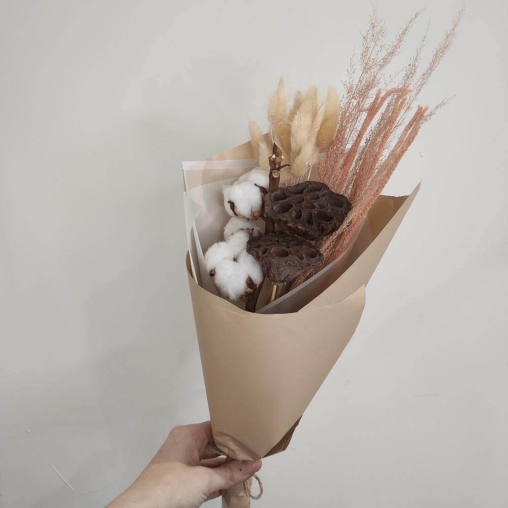 Лотос – 2 шт.Упаковка дизайнерская – 1 шт.Лагурус – 1 шт.Флум – 1 шт.Хлопок ветка – 1 шт.иулария – 1 шт.